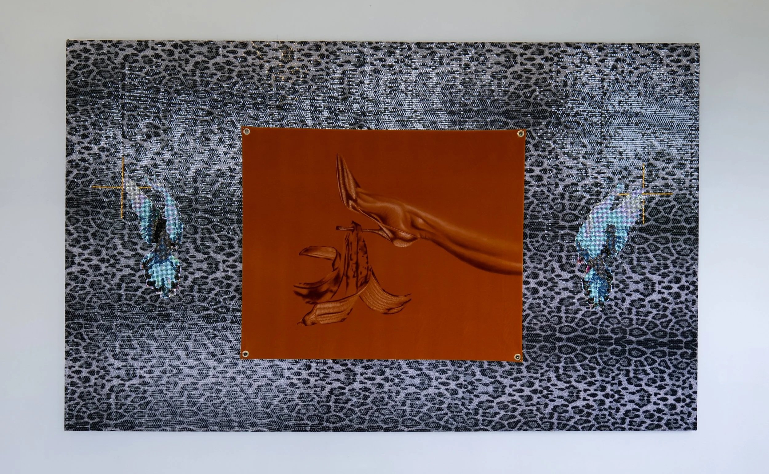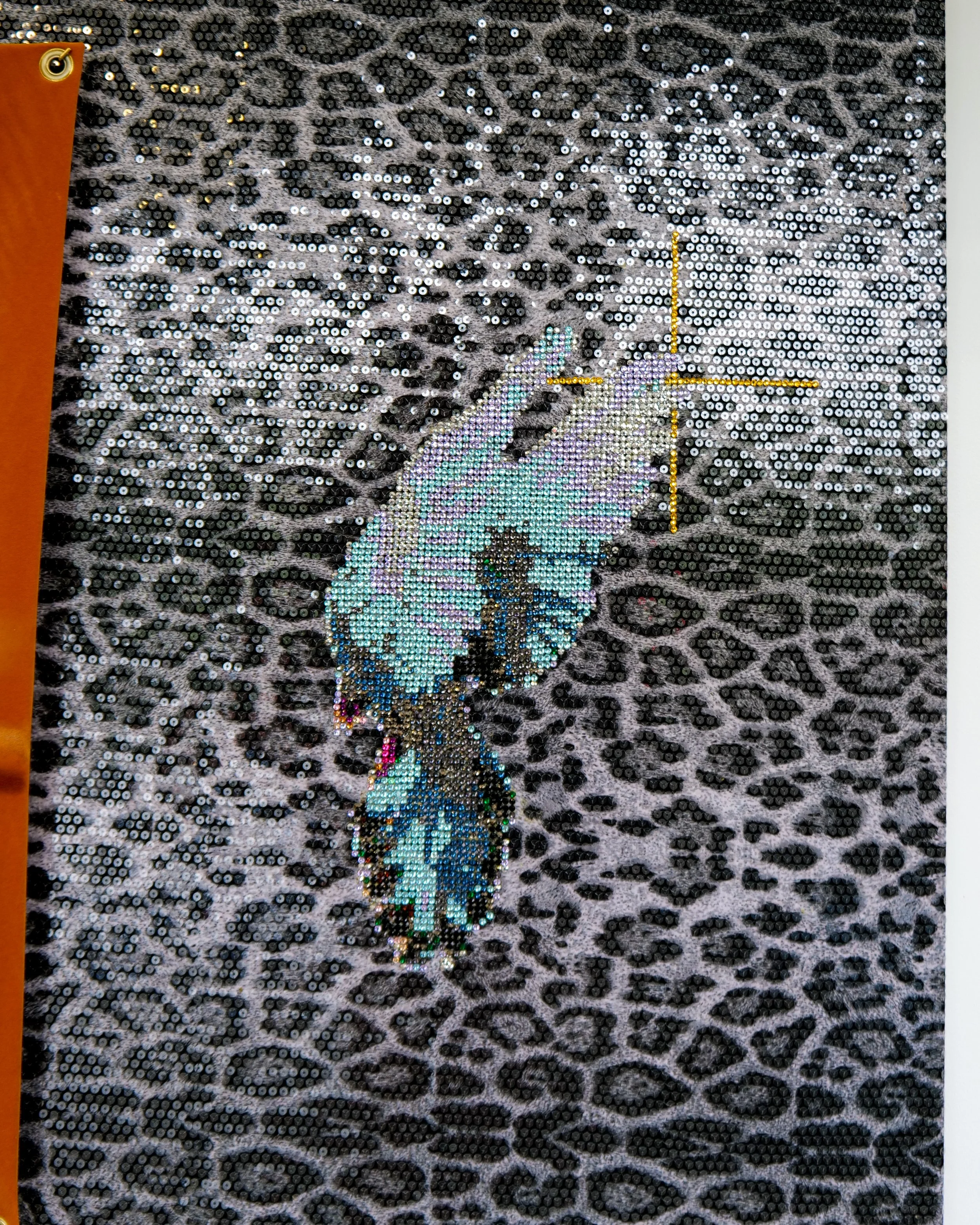 Acrylic on velvet, Faux diamond on Faux fur2040 x 1160 mm